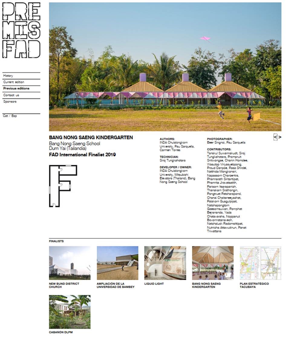 โครงการรักบ้านเกิดได้รับรางวัลการประกวดออกแบบสถาปัตยกรรม FAD Architecture Awards ประเทศสเปน