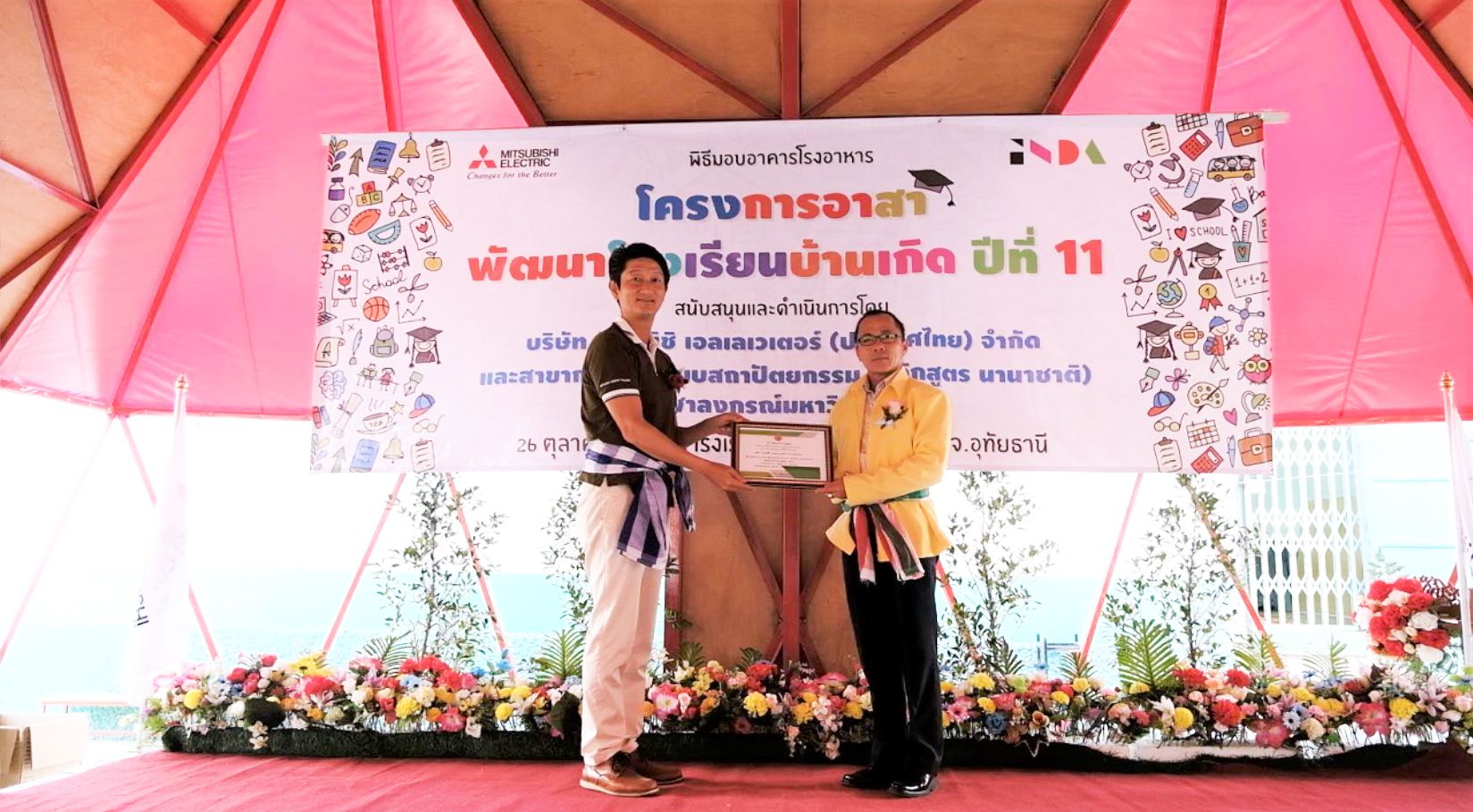 เมื่อวันที่ 26 ตุลาคม 2562 ผู้บริหารและพนักงานบริษัท มิตซูบิชิ เอลเลเวเตอร์ (ประเทศไทย) จำกัด ร่วมด้วยคณาจารย์และนักศึกษาจากคณะสถาปัตยกรรมศาสตร์ หลักสูตรนานาชาติ จุฬาลงกรณ์มหาวิทยาลัย ได้ทำพิธีเปิดอาคารโรงอาหารอเนกประสงค์ ณ โรงเรียนบ้านวังเตย จังหวัดอุทัยธานี ในกิจกรรมอาสาพัฒนาโรงเรียนบ้านเกิด Hometown School Development ซึ่งคัดเลือกจากโรงเรียนบ้านเกิดของพนักงานในบริษัทที่ต้องการการปรับปรุง พร้อมบริจาคสิ่งของให้กับโรงเรียนและนักเรียน อีกทั้งร่วมปลูกต้นไม้เพื่ออนุรักษ์ส่งเสริมสิ่งเเวดล้อม และเพิ่มพิ้นที่สีเขียวให้กับโรงเรียน