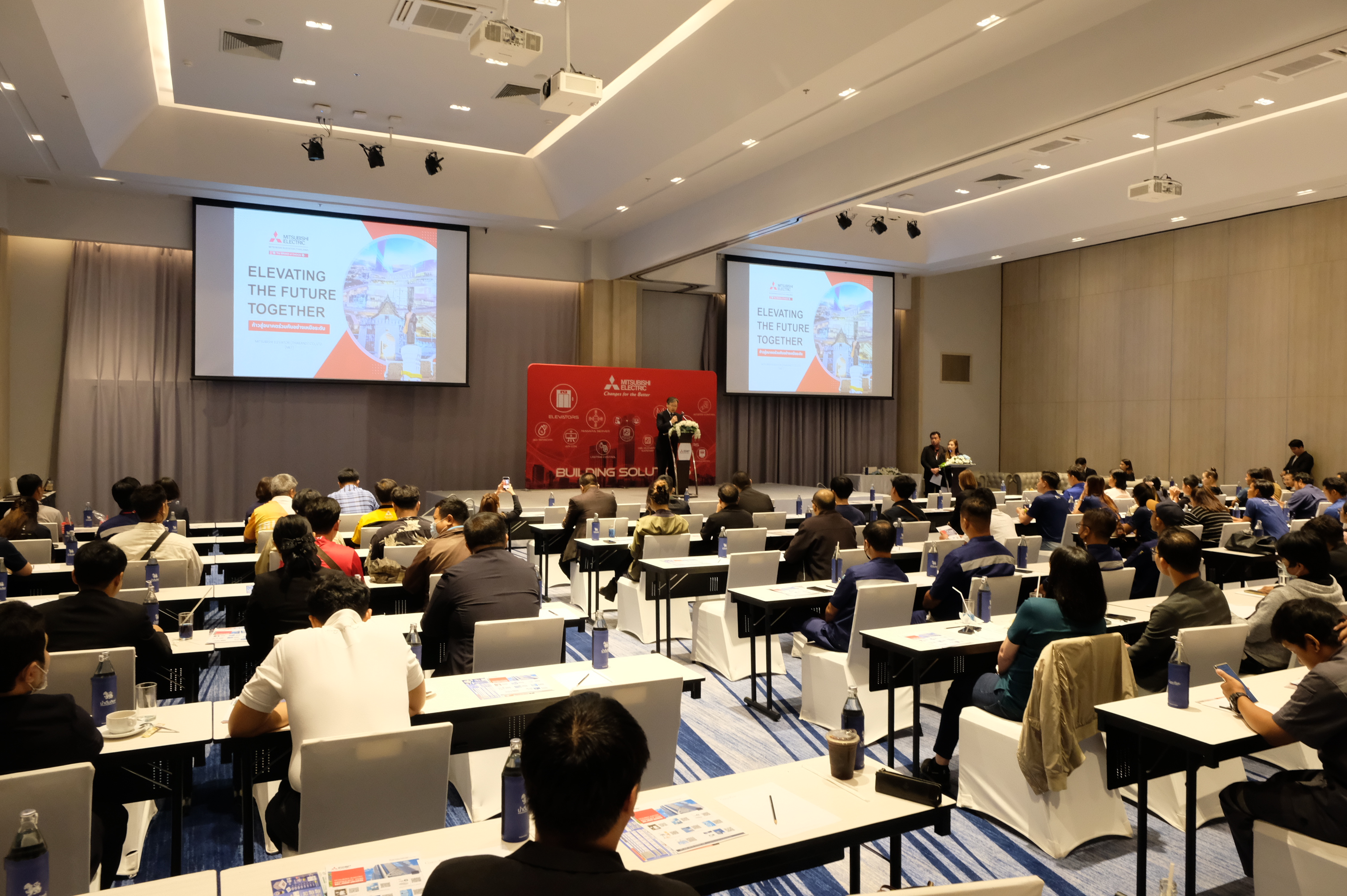 บริษัท มิตซูบิชิ เอลเลเวเตอร์ (ประเทศไทย) จำกัด ร่วมกับ บริษัท มิตซูบิชิ อีเล็คทริค กันยง วัฒนา จำกัด จัดงานสัมมนาอบรมสุดพิเศษ ภายใต้หัวข้อ “ยกระดับอนาคตไปด้วยกัน (Elevating the Future Together)” เพื่อเสริมสร้างความรู้และแนวคิดด้านเทคโนโลยี สมัยใหม่ในวงการลิฟต์ บันไดเลื่อน และเครื่องใช้ไฟฟ้า ให้แก่กลุ่มพันธมิตรธุรกิจ นักพัฒนา อสังหาริมทรัพย์ เจ้าของโครงกำร สถาปนิก และผู้เชี่ยวชาญด้านการบริหารจัดการอาคารในเขตพื้นที่ โซนภาคอีสาน ในจังหวัดนครราชสีมา ภายในงำนมีการบรรยายเกี่ยวกับนวัตกรรมล้ำสมัย ทั้งในด้านระบบขนส่งแนวตั้งและเทคโนโลยีเพื่อการ อยู่อาศัยแบบอัจฉริยะ พร้อมกิจกรรมสุดพิเศษ ได้แก่: