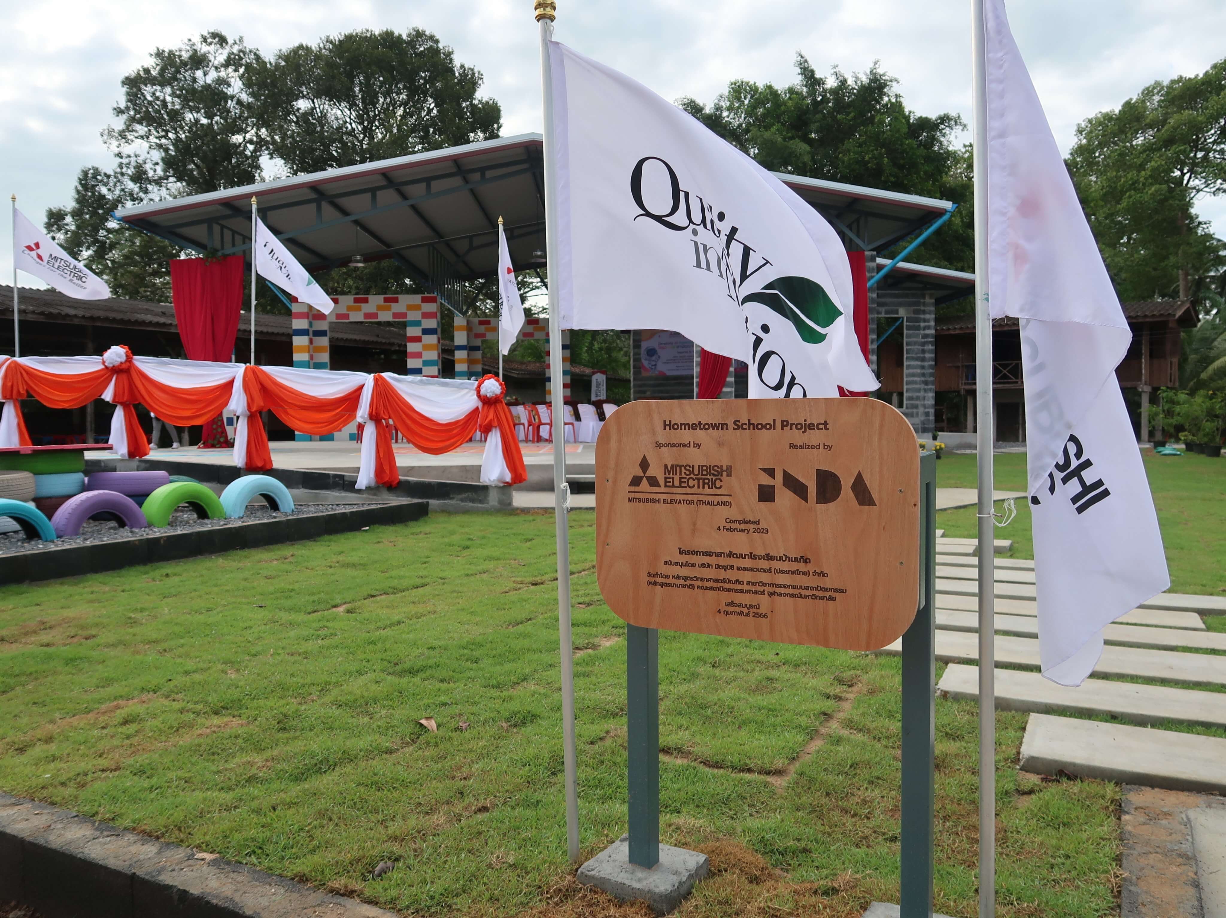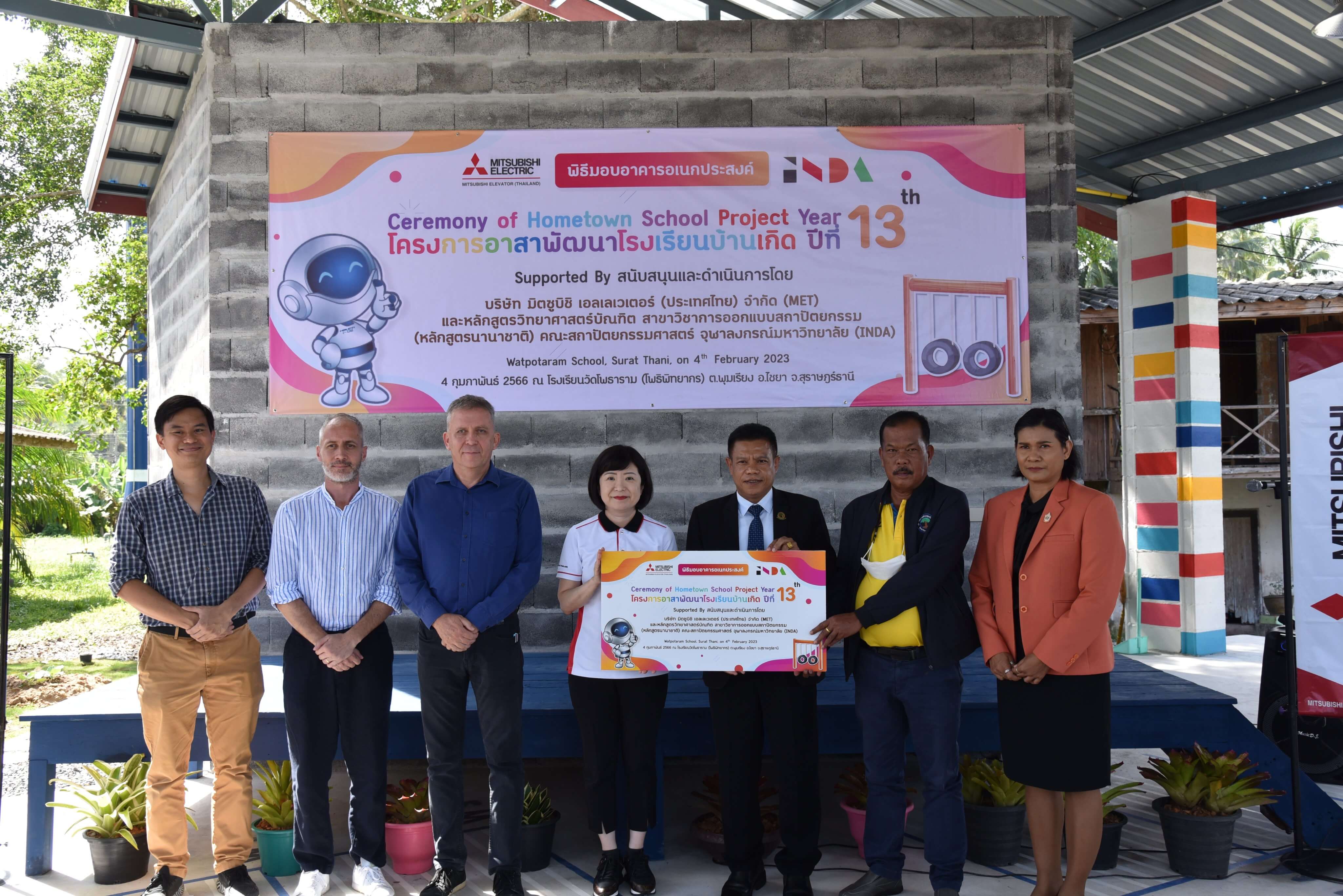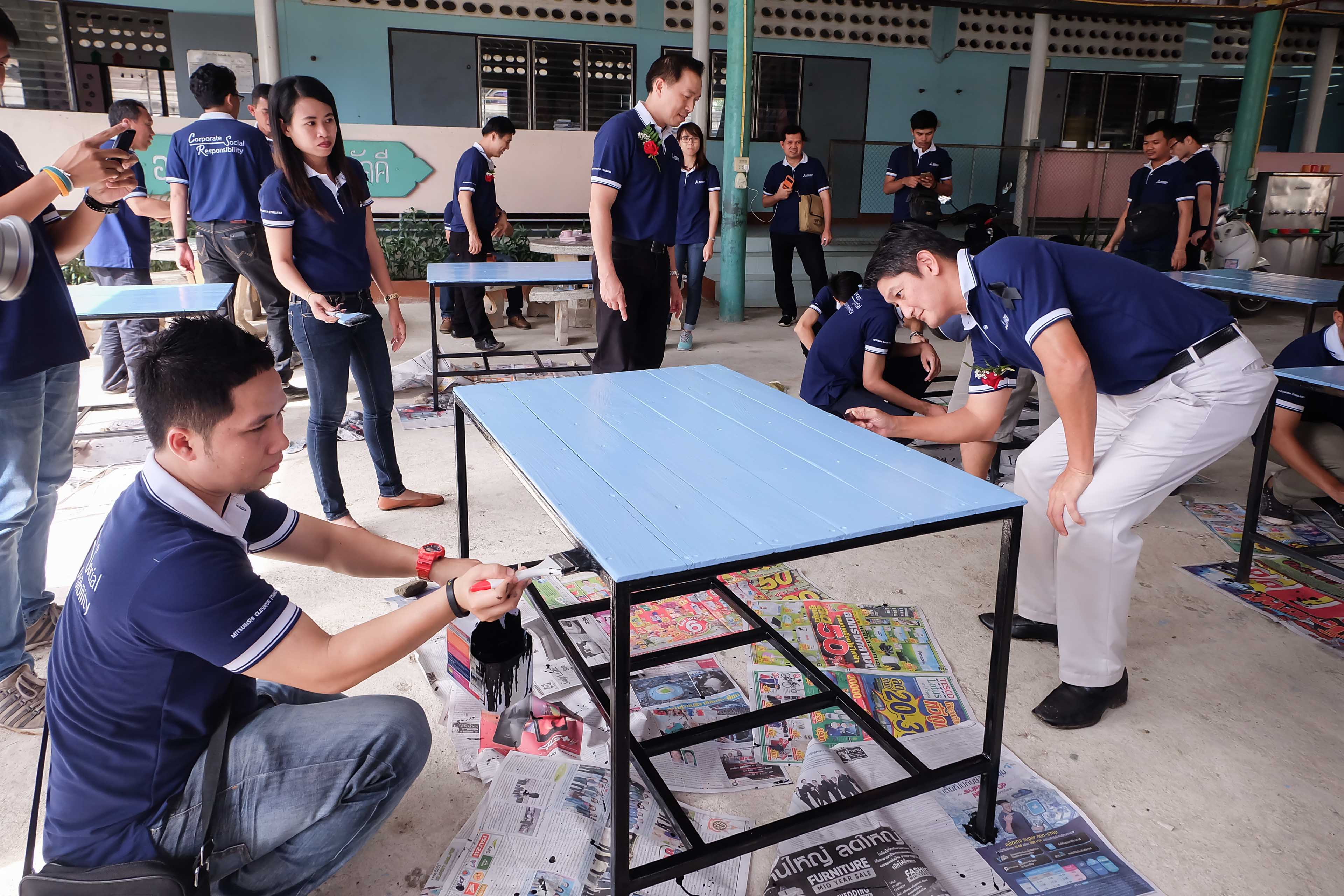 วิสัยทัศน์ในการตระหนักถึงความสำคัญในการพัฒนาสังคมอย่างยั่งยืนของเรานั้น ได้แผ่ขยายไปสู่พนักงานของมิตซูบิชิทุกคน ทุกๆปี เราจึงจัดให้พนักงานได้มีโอกาสเข้าร่วมส่งโครงงานเพื่อพัฒนาโรงเรียนบ้านเกิดของตนในชนบท โดยมุ่งส่งเสริมและสร้างจิตสำนึกให้พนักงานได้มีส่วนร่วมในการพัฒนาสังคมและสำนึกรักโรงเรียนบ้านเกิด อีกทั้งยังเป็นการเปิดโอกาสให้พนักงานท่านอื่นได้ร่วมแรงร่วมใจก่อให้เกิดความสามัคคีและความเป็นน้ำหนึ่งใจเดียวกัน ทั้งนี้เรามีพันธมิตรที่ช่วยในการสร้างสรรค์โครงการนี้ คือ คณะสถาปัตยกรรมศาสตร์ จุฬาลงกรณ์มหาวิทยาลัย (หลักสูตรนานาชาติ) ที่ช่วยสมทบทุนส่วนหนึ่งรวมถึงการออกแบบและก่อสร้างโดยคณะนักศึกษาและอาจารย์ เพื่อเป็นการฝึกฝนวิชาความรู้ไปด้วยในเวลาเดียวกัน